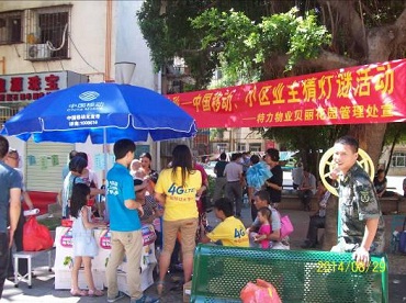 中秋前夕,為豐富小區(qū)居民的業(yè)余生活,增加與小區(qū)居民的互動(dòng),特力物業(yè)水貝管理處與中國(guó)移動(dòng)公司一起舉辦了中秋節(jié)猜燈謎聯(lián)歡活動(dòng),為小區(qū)居民送上濃濃的節(jié)日祝福。活動(dòng)當(dāng)天,貝麗花園文化廣場(chǎng)掛起了彩色謎語(yǔ)條、燈籠,充滿了節(jié)日氣氛,小區(qū)居民、老人、暑期的學(xué)生,紛紛前來(lái)參加活動(dòng)。中國(guó)移動(dòng)公司為參加活動(dòng)的業(yè)主提供了小禮品;顒(dòng)受到業(yè)主、住戶的一致贊揚(yáng)。