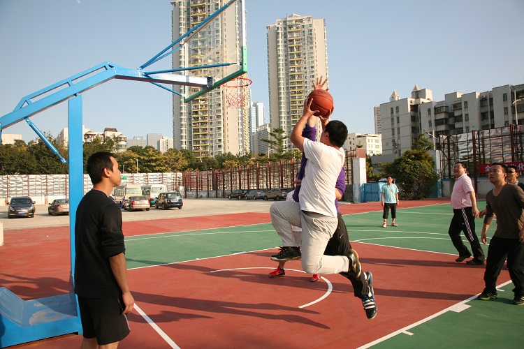 下午2時(shí),來(lái)自公司各部門(mén)、龍華分公司、天鵝公司、監(jiān)理公司組成的籃球、女子乒乓球隊(duì)員、啦啦隊(duì)列隊(duì)進(jìn)入籃球場(chǎng)。在公司領(lǐng)導(dǎo)簡(jiǎn)短致詞和裁判長(zhǎng)宣布比賽規(guī)則后,丁曉東董事長(zhǎng)做迎新年講話并宣布比賽開(kāi)始,正式拉開(kāi)賽事帷幕。各路隊(duì)員分成A、B兩個(gè)賽區(qū)展開(kāi)激烈的循環(huán)賽。A區(qū)首場(chǎng)比賽在“精英隊(duì)”(辦公室隊(duì))與天才隊(duì)(天鵝公司、財(cái)務(wù)部聯(lián)隊(duì))之間展開(kāi)。“精英隊(duì)”在3名隊(duì)員年齡大的情況下,有著籃球功底的鄭月英展示出一名后衛(wèi)的實(shí)力,接球、分球、組織進(jìn)攻步步到位,隊(duì)員拼搶積極,配合默契,比賽一開(kāi)始讓“天才隊(duì)”難以接招,但“天才隊(duì)”不甘示弱,雙方比分交替上升,難分伯仲。由于“精英隊(duì)”缺少替補(bǔ),隊(duì)員體力不支,最終敗下陣來(lái),晉級(jí)機(jī)會(huì)渺茫。最為激烈的是冠軍爭(zhēng)奪戰(zhàn)。A、B組兩隊(duì)勁旅在決賽中相遇,丁曉東帶領(lǐng)的“成功隊(duì)”(成本、工程管理部聯(lián)隊(duì)),對(duì)陣巫石明帶領(lǐng)的“烏龍隊(duì)”(龍華分公司隊(duì)),稍占上風(fēng)的“烏龍隊(duì)”一路領(lǐng)先,“成功隊(duì)”緊跟其后,在最后關(guān)頭,“成功隊(duì)”采取盯人戰(zhàn)術(shù),搶斷反攻,把比分追成10比10平局。整場(chǎng)比賽15分鐘時(shí)間很快結(jié)束,當(dāng)比賽離終場(chǎng)還剩下最后十幾秒鐘時(shí),“成功隊(duì)”隊(duì)員不幸折將離場(chǎng),比賽不得不采取投籃決勝負(fù)的方式,結(jié)果“成功隊(duì)”惜敗,屈居亞軍。