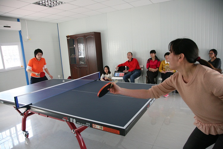在另一賽區(qū),同時(shí)展開(kāi)搏殺的還有室內(nèi)女子乒乓球比賽。有堪稱(chēng)乒乓一姐的張梅很快殺進(jìn)決賽,冠軍寶座十拿九穩(wěn)。爭(zhēng)奪最為激烈的是半決賽爭(zhēng)奪戰(zhàn),原來(lái)被人看好的人力資源部女將蔣艷軍比賽爆出冷門(mén),以二比三不敵監(jiān)理公司的廖紹芳,無(wú)緣決賽。三、四名的爭(zhēng)奪在人力資源部?jī)晌慌畬⒅g進(jìn)行。平時(shí)性格開(kāi)朗的張小奮上場(chǎng)霸氣十足,實(shí)力略勝一籌的她一開(kāi)始因不適應(yīng)對(duì)方的旋轉(zhuǎn)發(fā)球,丟分較快,當(dāng)她破解對(duì)方發(fā)球后,反敗為勝,比分拉開(kāi),張小奮一路高歌笑到最后獲得第三名。