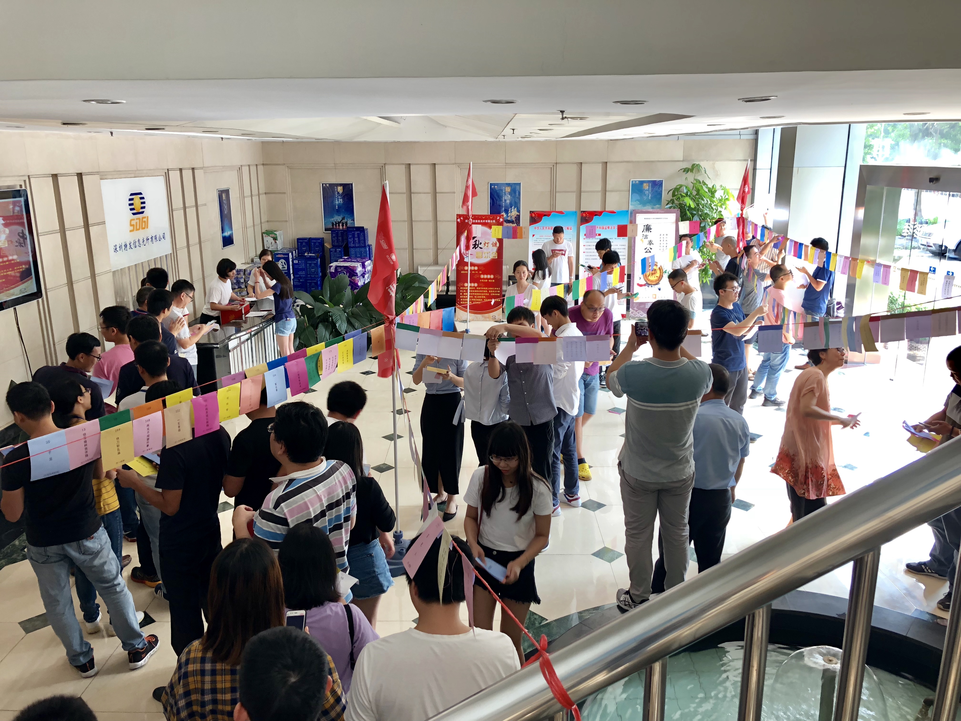 本屆中秋猜謎活動(dòng)光纖公司以宣貫企業(yè)文化為主題,將娛樂(lè)活動(dòng)與企業(yè)文化宣傳相結(jié)合,在謎題中融入了特發(fā)集團(tuán)和特發(fā)信息的企業(yè)文化理念,讓同事們?cè)跉g樂(lè)之余增進(jìn)對(duì)企業(yè)文化的了解。猜謎會(huì)上同事們駐足謎題前,簇?fù)碓谥i題下駐足細(xì)看、低頭思索、相互討論,人群里不時(shí)傳出猜中謎底或領(lǐng)到小禮品的陣陣歡呼,許多同事在活動(dòng)接近尾聲時(shí)依舊沉浸其中,久久不愿離去。