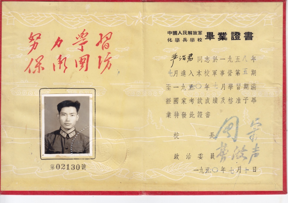 1950年10月,抗美援朝急需作戰(zhàn)指揮員,林華棟被派往華北軍政大學(xué)擔(dān)任為抗美援朝部隊培養(yǎng)干部的任務(wù),其中包括了我的父親嚴(yán)治君。那時,我父親17歲時,還是四川宜賓老家一個平頭百姓的小學(xué)徒工,在四川解放時參加劉鄧大軍后走上“保和平,為祖國,就是保家鄉(xiāng)”的朝鮮戰(zhàn)場,經(jīng)受了血與火的生死洗禮,在戰(zhàn)場上榮獲三等功;貒,父親被安排到解放軍防化學(xué)院進修學(xué)習(xí),成為了一名軍隊大學(xué)生。他永遠感激共產(chǎn)黨培養(yǎng)了他,教育了他,讓他成為一個可以為國家做出貢獻之才。他時常掛在嘴邊的話:“我的戰(zhàn)友們,都犧牲在朝鮮戰(zhàn)場上;我的同學(xué)們都犧牲在越南戰(zhàn)場上。比起在戰(zhàn)場上犧牲了的千千萬萬個革命烈士,我已經(jīng)多活了很多年,我非常知足!松怨耪l無死,留取丹心照汗青’”。
