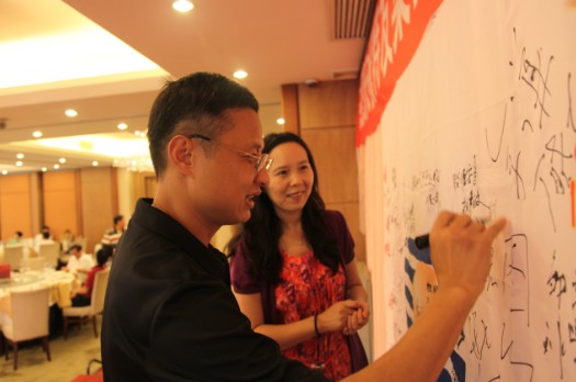 登山開始了,大家隨意分成一隊隊,沿著山路臺階拾級而上,穿行在青山綠樹間,吮吸著夾帶泥土味的新鮮空氣,邊輕松行走,邊交流工作心得,談笑間便來到了臨近山頂?shù)男蓓脚_。一面印有特發(fā)核心價值觀“全員職業(yè)化,成就美好生活”的司旗早已擺放好在石桌上,等候大家簽名祝福。劉愛群董事長率先提筆寫下“特發(fā)的明天更美好”的祝福語,深情表達特發(fā)人對美好未來的熱切期盼。陸續(xù)登上平臺的特發(fā)人紛紛留下自己對特發(fā)集團的美好心愿和祝福:“大展宏圖”、“正是特發(fā)三十年,創(chuàng)業(yè)當(dāng)趁好時光”、“明天風(fēng)景更好”、“特發(fā)集團,一飛沖天”、“祝愿特發(fā),三十而立,輝煌再現(xiàn)”……共同祝愿特發(fā)集團在“全員職業(yè)化,成就美好生活”核心價值觀的引領(lǐng)下,在未來的發(fā)展道路上闊步前進,基業(yè)長青!