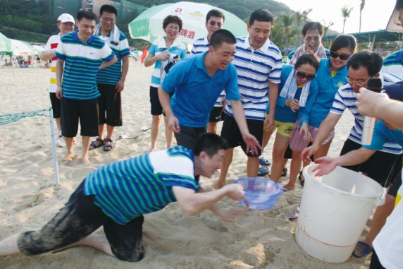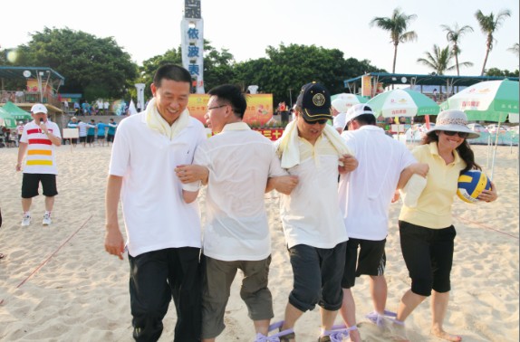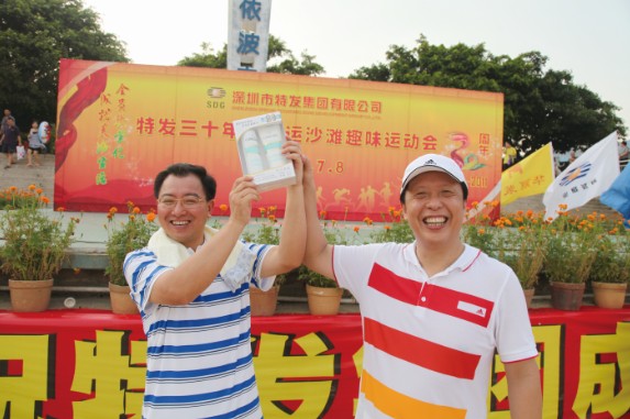 7月8日,特發(fā)小梅沙旅游中心裝扮一新,司旗彩旗迎風飄揚,五彩鮮花競相綻放,“熱烈慶祝特發(fā)集團成立30周年”等祝福語在小梅沙酒店門口的LED大屏幕上不停滾動,到處彌漫著祥和歡樂的氣氛。下午4:30,特發(fā)30年迎大運沙灘趣味運動會在美麗的小梅沙海灘拉開帷幕。集團總部全體員工、全資控股企業(yè)班子成員及財務負責人、參股企業(yè)特發(fā)方產權代表參加運動會。運動會安排了沙灘排球、步調一致和障礙接力3個項目;根據(jù)人數(shù)對等的原則,運動員分成4支參賽隊伍,即:由集團公司領導和部門領導組成的公司一隊;由集團公司各部門員工組成的公司二隊;由特發(fā)信息、小梅沙旅游中心、特發(fā)物業(yè)3家企業(yè)組成的企業(yè)一隊;由特力集團、香蜜湖度假村、黎明集團、高爾夫、華麗公司、華明公司組成的企業(yè)二隊。