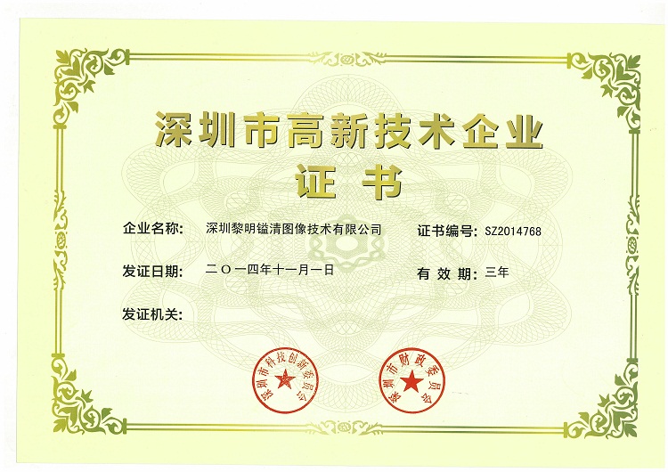 發(fā)布日期:2015/1/19 18:55:07 | 瀏覽次數(shù):7103 來源:特發(fā)黎明鎰清公司 張志彬近日,深圳黎明鎰清圖像技術有限公司獲得由深圳市科技創(chuàng)新委、深圳市財政委聯(lián)合頒發(fā)的《高新技術企業(yè)證書》,標志著黎明鎰清正式通過了深圳市高新技術企業(yè)認定,成為深圳市級高新技術企業(yè)。