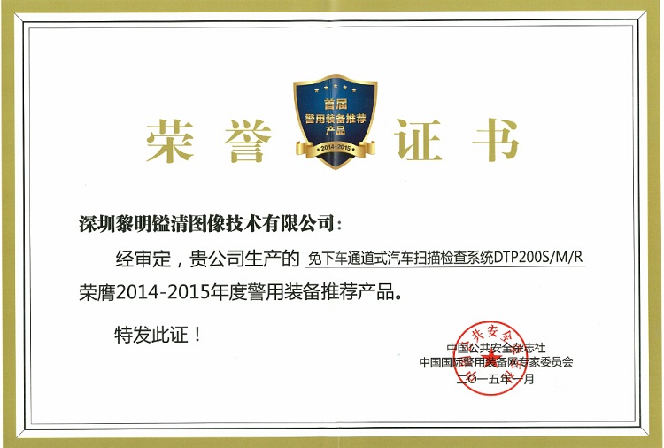 發(fā)布日期:2015/2/6 11:04:36 | 瀏覽次數(shù):7061 來(lái)源:特發(fā)黎明鎰清公司 張志彬1月7日,由中國(guó)公共安全雜志社、深圳市安全防范行業(yè)協(xié)會(huì)和CPS中安網(wǎng)聯(lián)合推出的“首屆警用裝備推薦產(chǎn)品”獎(jiǎng)在深圳隆重揭曉。特發(fā)黎明鎰清公司生產(chǎn)的“免下車通道式汽車掃描檢查系統(tǒng)DTP200S/M/R”榮膺2014-2015年度警用裝備推薦產(chǎn)品。