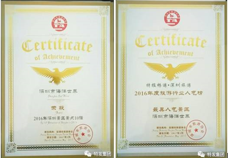 會(huì)上,特發(fā)集團(tuán)小梅沙海洋世界在被授予“2016年度深圳景區(qū)景點(diǎn)十強(qiáng)”、“2016年度深圳旅游行業(yè)人氣榜最具人氣景區(qū)”稱號(hào)。這是特發(fā)小梅沙海洋世界繼2015年進(jìn)入景區(qū)景點(diǎn)十強(qiáng)后,又一次榮登十強(qiáng)榜,并與歡樂谷、東部華僑城、世界之窗、錦繡中華民俗村等著名景點(diǎn)同時(shí)站在十個(gè)最具人氣景區(qū)領(lǐng)獎(jiǎng)臺(tái)上。