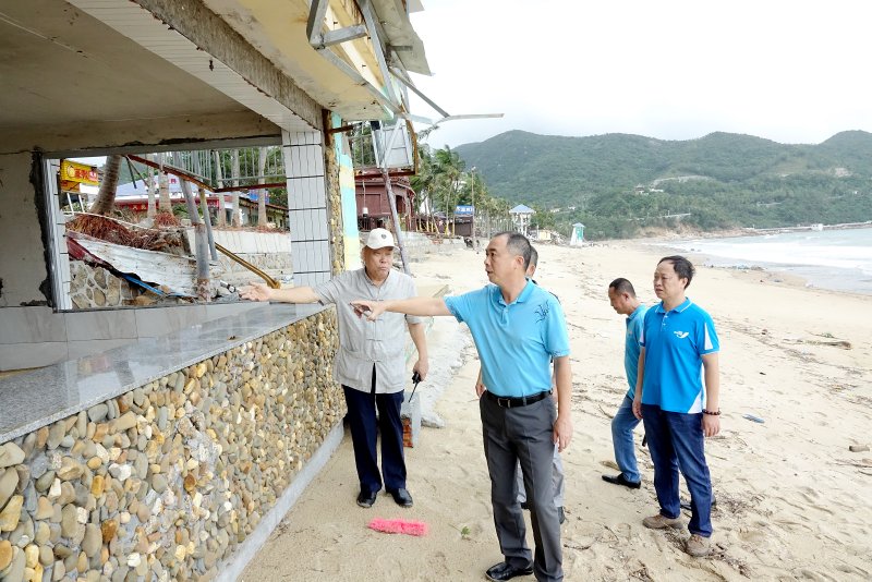 特發(fā)集團(tuán)張俊林董事長、高天亮總經(jīng)理、張暾監(jiān)事會主席、陳陽升財(cái)務(wù)總監(jiān)、桂自強(qiáng)副總經(jīng)理等先后察看了小梅沙酒店、小梅沙度假村的受災(zāi)情況,當(dāng)看到小梅沙沙灘堤岸被沖垮,酒店大量樹木倒塌,房屋建筑嚴(yán)重受損,張俊林董事長表示非常痛心,沒想到災(zāi)害如此嚴(yán)重。同時(shí)對災(zāi)后重建及恢復(fù)生產(chǎn)工作提出三點(diǎn)要求:一是要根據(jù)受災(zāi)情況,盡快摸清實(shí)際損失,并制定災(zāi)后重建、恢復(fù)生產(chǎn)工作方案;二是要嚴(yán)防災(zāi)后次生災(zāi)害的發(fā)生,做好安全防護(hù)措施,特別是目前小梅沙度假村經(jīng)臺風(fēng)破壞后已處于開敞狀態(tài),要注意游客的生命健康安全;三是小梅沙旅游災(zāi)后重建工作要充分結(jié)合小梅沙二次開發(fā)整體安排,統(tǒng)籌協(xié)調(diào),做好沙灘修復(fù)工作。