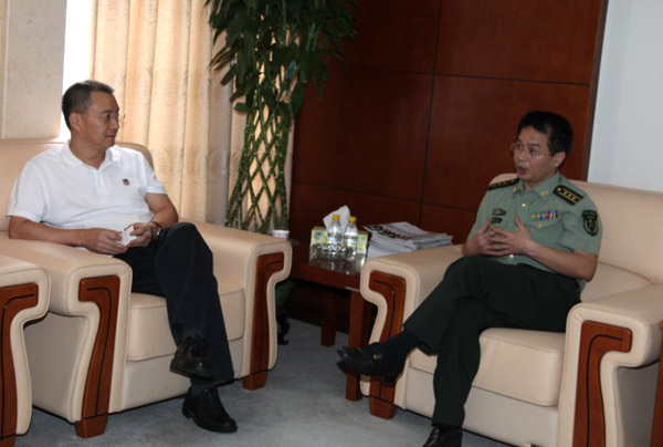 2011年5月24日上午,深圳市羅湖區(qū)人民武裝部政委劉曉春上校、副部長(zhǎng)劉志鵬中校等一行四人蒞臨我司,調(diào)研集團(tuán)民兵團(tuán)建設(shè)和指導(dǎo)集團(tuán)武裝部工作。集團(tuán)總經(jīng)理施長(zhǎng)躍、辦公室主任丁輝、副主任陳忠煉、副主任劉軍熱情接待了劉政委一行。施長(zhǎng)躍總經(jīng)理首先介紹了集團(tuán)的基本情況,陳忠煉副主任匯報(bào)了集團(tuán)民兵團(tuán)建設(shè)和集團(tuán)武裝部工作情況,劉政委認(rèn)真聽(tīng)取了介紹和匯報(bào),對(duì)特發(fā)集團(tuán)人武建設(shè)工作給予了充分肯定和贊賞。